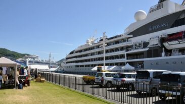 ダイヤモンド・プリンセス(ダイプリ)&ル・ソレアルが同時入港!長崎水辺の森公園でMemo marché(メモ・マルシェ)も開催され外国人で賑わい