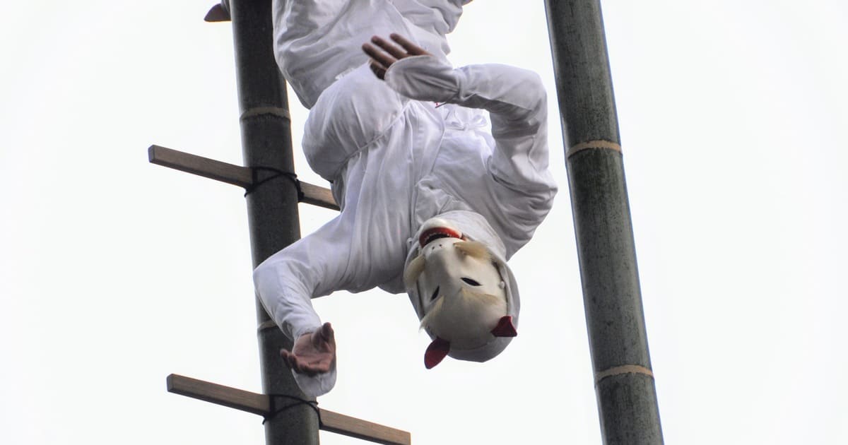 高さ約5メートルの竹に登り演技を披露することで、伝統の継承への願いが込められています。
