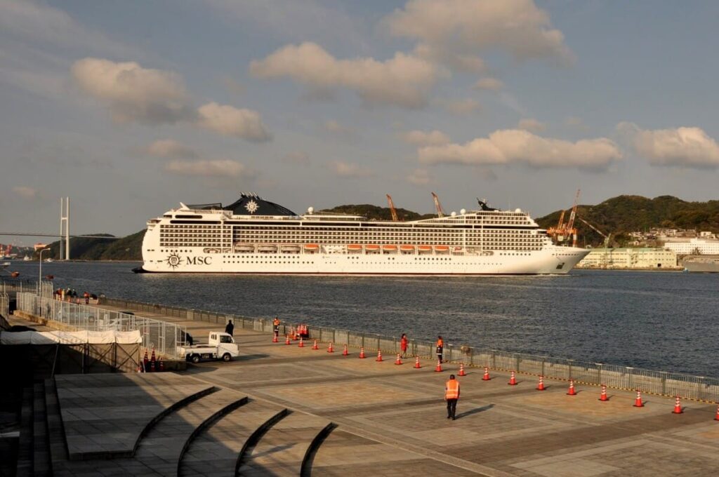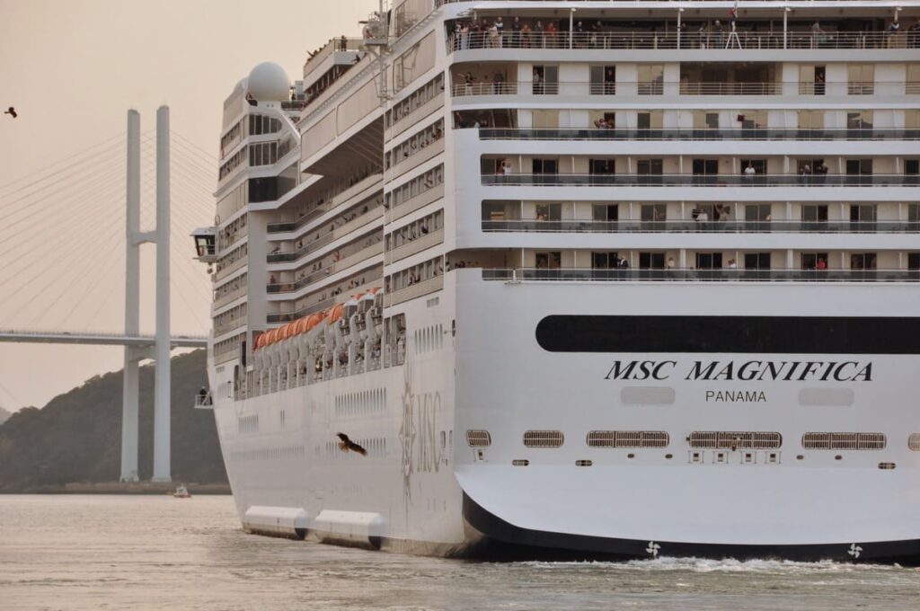 私が実際に長崎港でMSCマニフィカを見たとき、一番驚いたのはその「船体の美しさ」です。