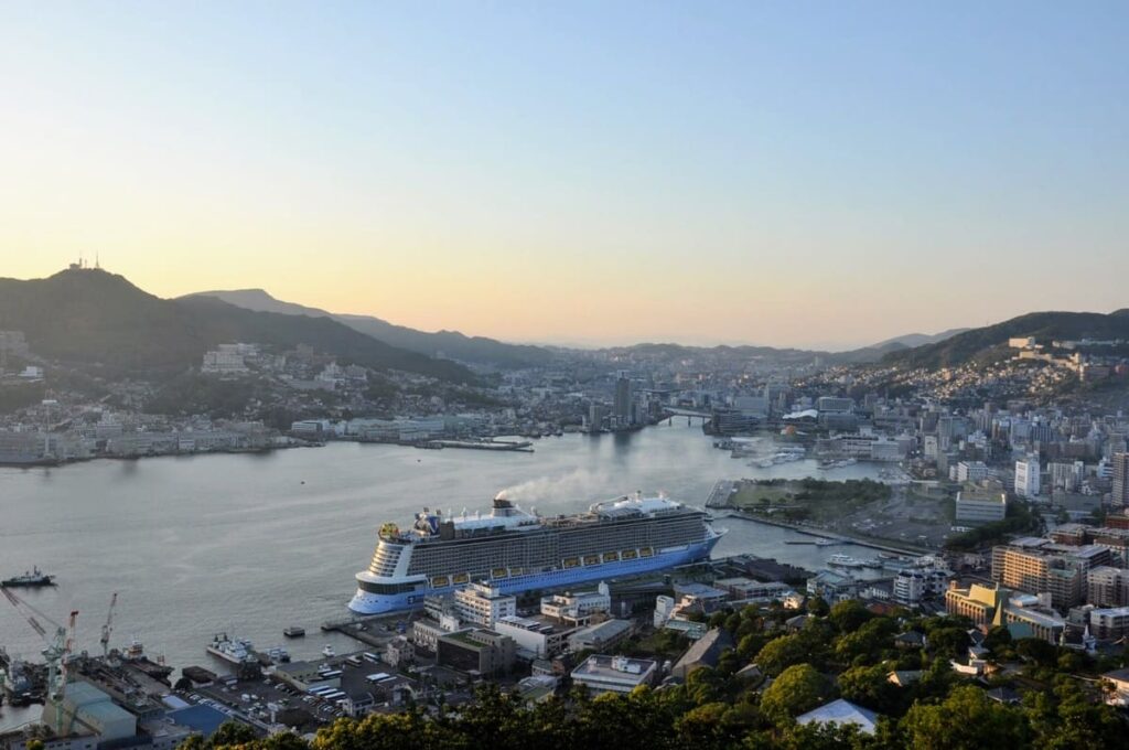 スペクトラム・オブ・ザ・シーズは約17万トン、全長約347メートル、高さ約90メートルにも及ぶ非常に巨大なクルーズ客船のため、長崎市内各所からその雄大な姿を見ることができます。